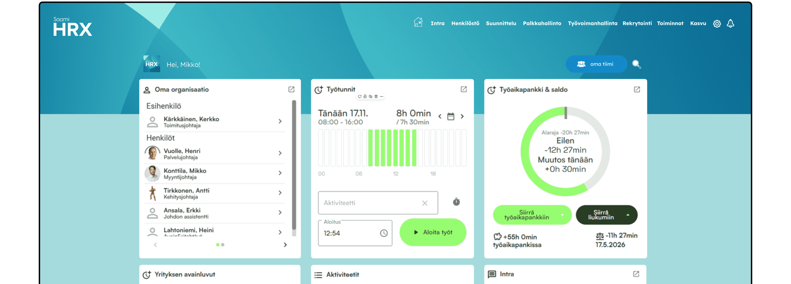 Saarni HRX- järjestelmän älykkäällä automaatiolla suoraviivaistat yrityksesi henkilöstö- ja palkkahallinnan prosesseja.